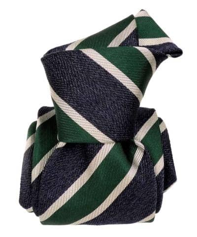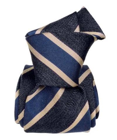 La base è caratterizzata da un blu navy intenso , sobrio e senza tempo, attraversato da strisce diagonali bordeaux , incorniciate da sottili contorni avorio . Rispetto alla versione precedente, la palette qui appare più sobria e classica: il bordeaux introduce profondità e calore, mentre la linea avorio aggiunge chiarezza e contrasto senza interrompere l'armonia del design.