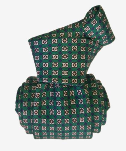 Corbata de seda con motivo ovalado - Forro de rayas azul marino y blanco en puro algodón