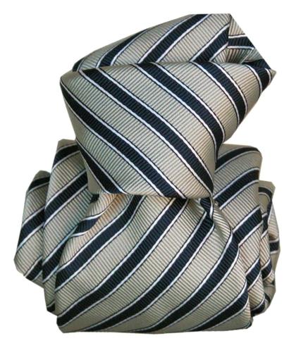 This variant stands out for its sober and balanced palette , where the warm ivory background interacts with regimental blue and anthracite grey stripes , finished with subtle light accents that enhance their definition.