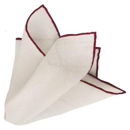 The combination of bright white and deep burgundy adds refined character, making it ideal for navy, grey or brown tailoring.