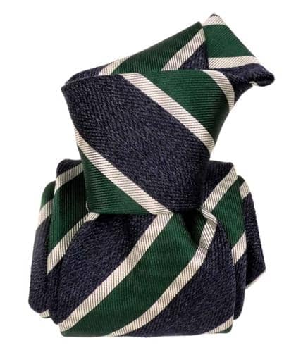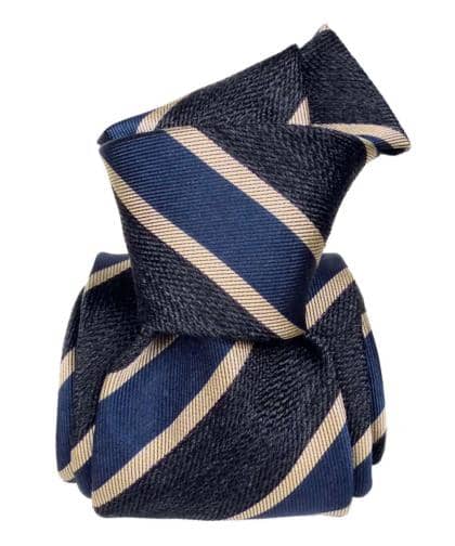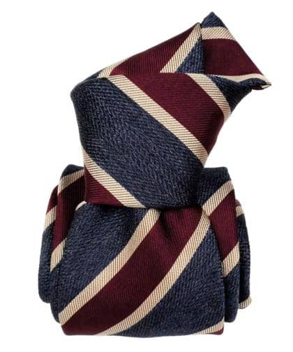 The base features a deep navy blue, sober and timeless, crossed by diagonal burgundy stripes, framed by fine ivory outlines. Compared to the previous version, the palette here feels more restrained and classic: the burgundy introduces depth and warmth, while the ivory line adds clarity and contrast without breaking the harmony of the design.