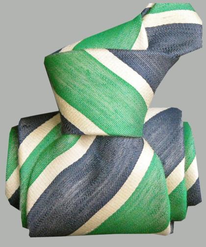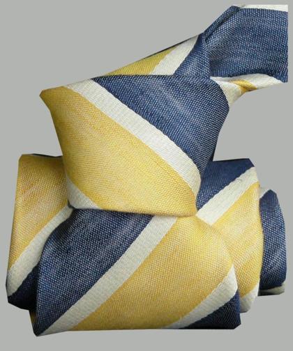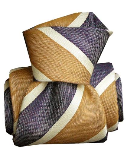 Regimental tie crafted from 60% silk and 40% linen with a satin weave. The satin texture adds brightness and depth to the color, while the linen lends a slightly textured, natural feel.